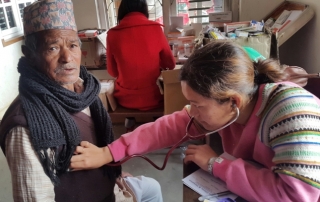 - Keshab checking ears at Teku Ear Camp
